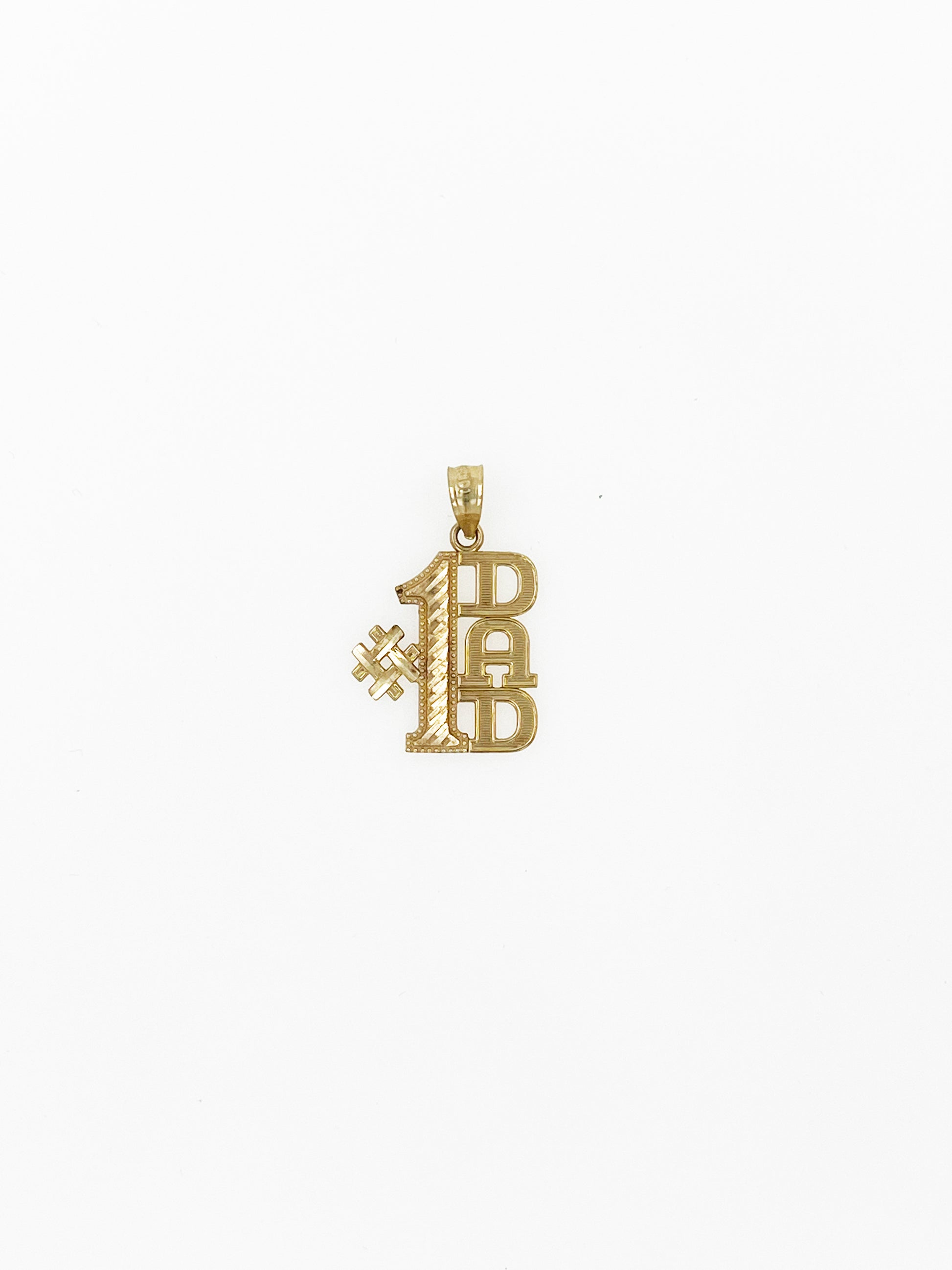 The bold "#1 Dad" inscription is beautifully rendered in 10k yellow gold, adding a touch of sophistication to this meaningful piece. The pendant serves as a timeless reminder of the special bond between a father and their loved ones.